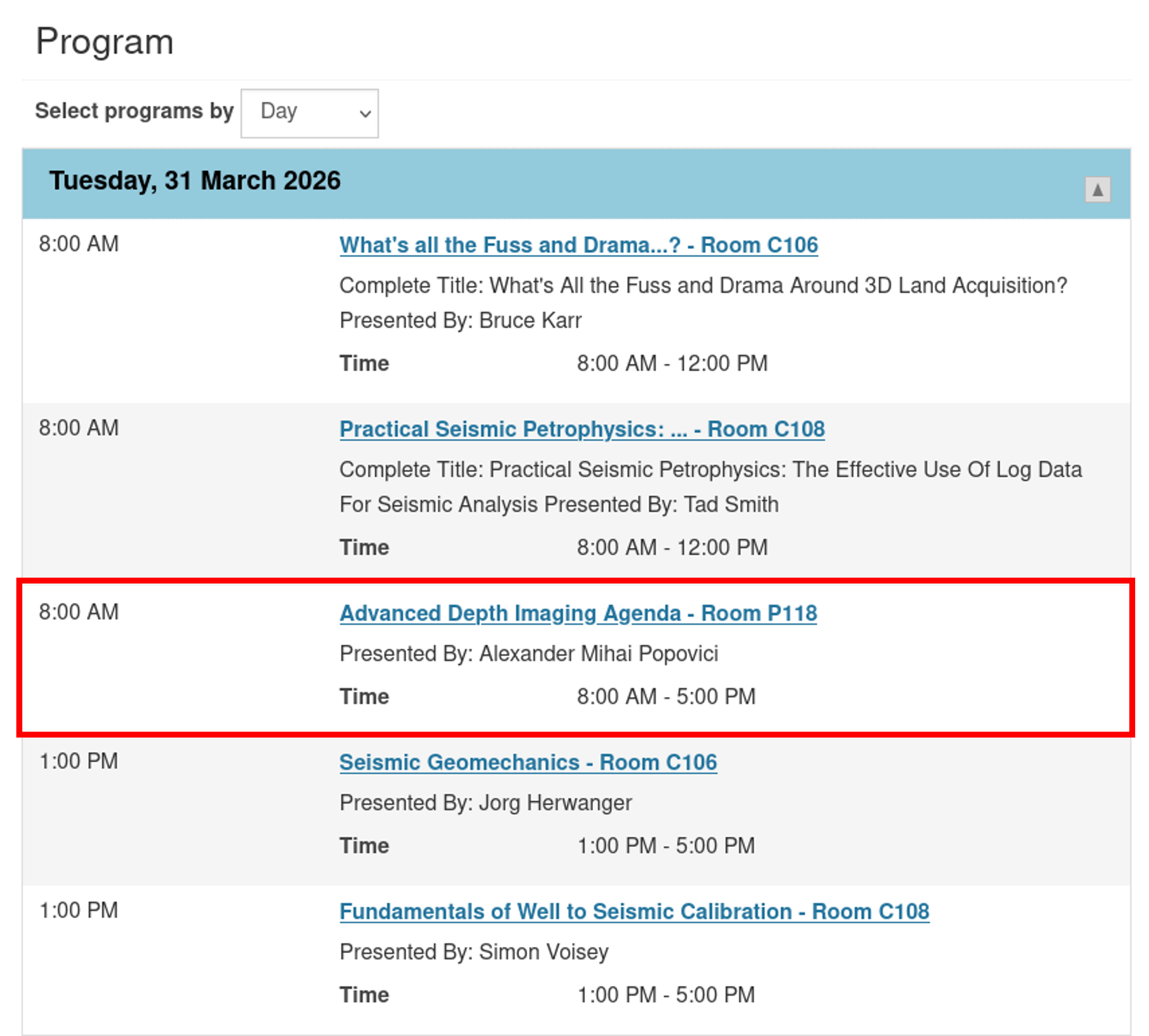 To see details of Mihai’s class click on the link for “Advanced Depth Imaging Agenda – Room P118″